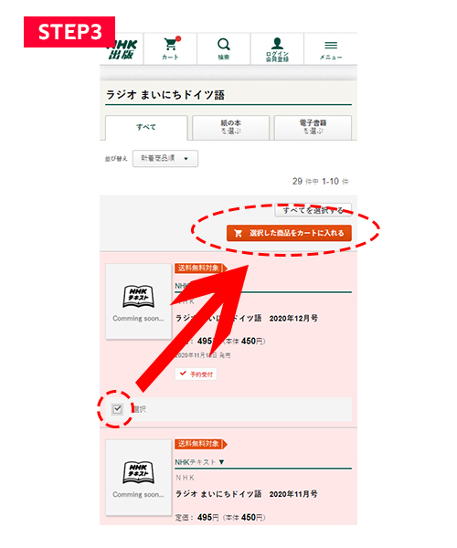 【STEP3】3か月分を選択したら、「選択した商品をカートに入れる」ボタンをクリックします。