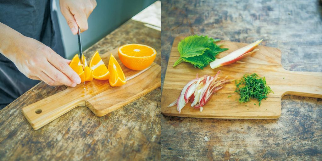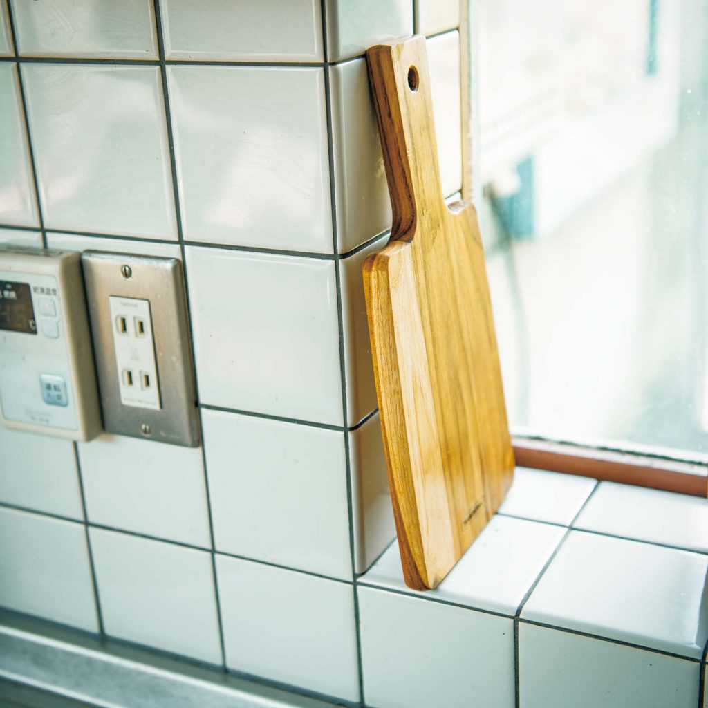 「カッティングボードは木製のものと決めています」と話す城さん。木製のものには木目のニュアンスがあるし、一般的に包丁の刃の当たりが柔らかいのが気に入っているとか。また、長く使い込むと独特の風合いが出てきて、味わい深くなるのも好きだそうです。