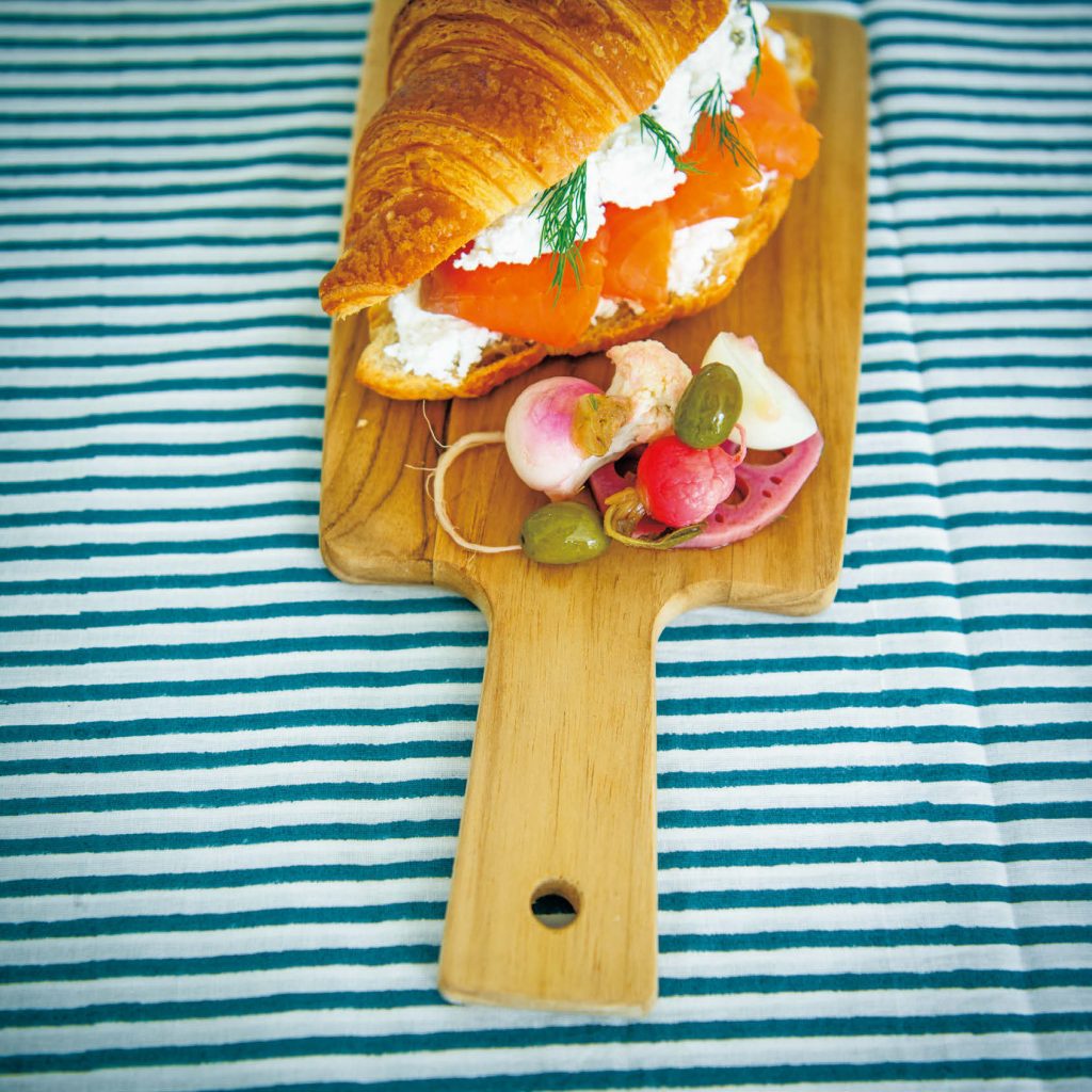 サービングボードとして使う場合は、チーズやサラミを盛り合わせたり、クロワッサンサンドを盛ってピクルスを添えたり。ふだんの食卓はもちろん、お客様のときにも喜ばれる映える演出になりますね。