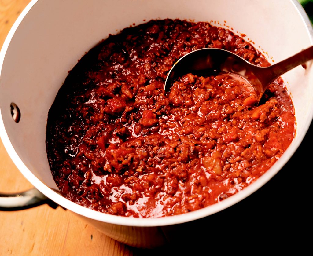 大橋さんが家でよくつくるという本格派のボロネーゼ。なんと赤ワインを1本入れてじっくり煮込み、大人の味に。