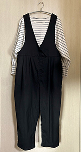 かたやまゆうこさんのドルマンスリーブのカットソーと、美濃羽まゆみさんのサロペット風パンツです。カットソーはずいぶん前に作ったのですが、最近作ったサロペット風パンツと合わせてみたら、とてもよく合い、最近気に入ってるコーディネートです。