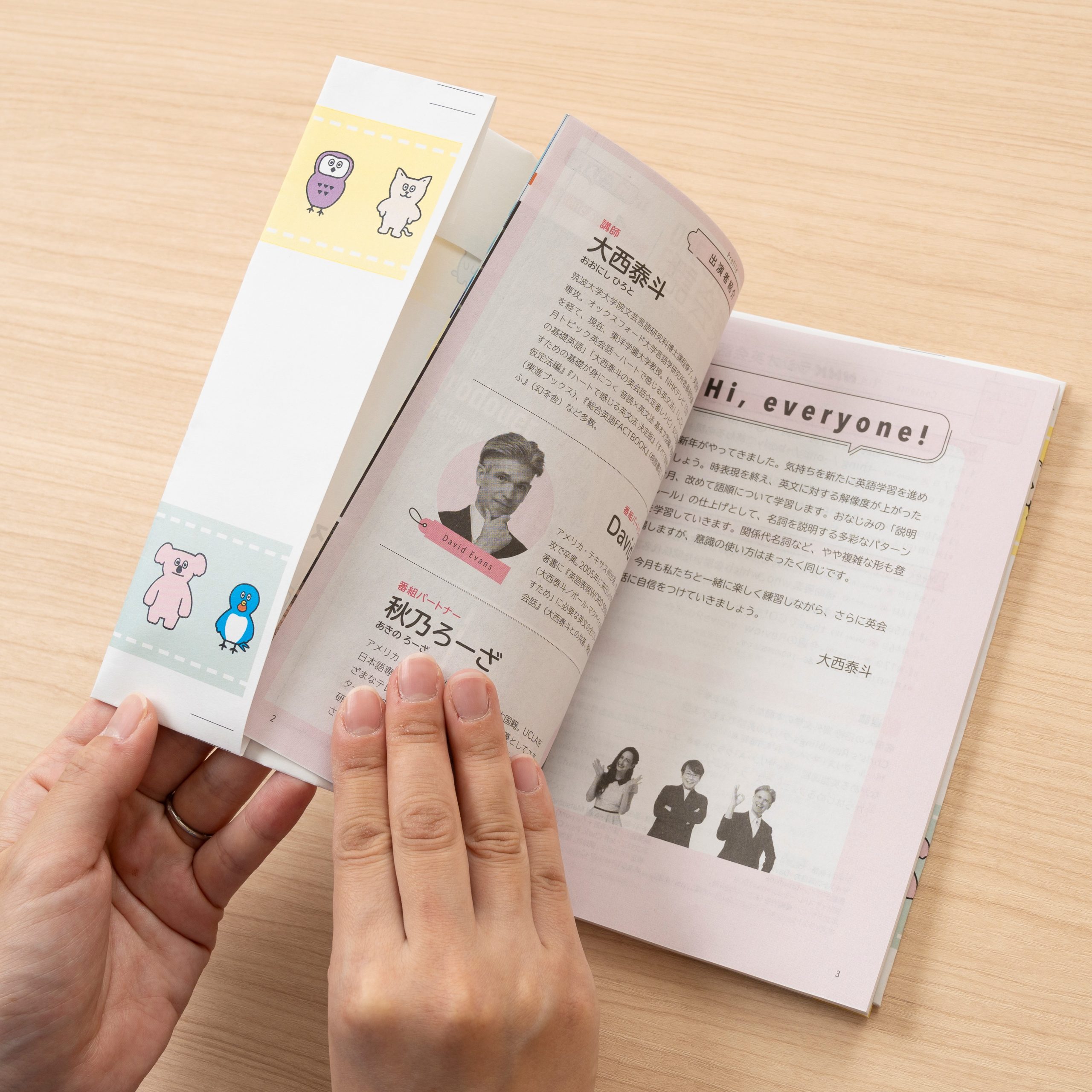 PDFデータをA3サイズで印刷します。テキストカバーには、テキストの大きさに合わせてガイド線が印刷されています。一番内側からA5変型判(「エンジョイ・シンプル・イングリッシュ」)、A5判(「ラジオ英会話」「ラジオ英会話サブノート 1日1文!集中トレーニング」「ラジオビジネス英語」「英会話タイムトライアル」)、B5判(「基礎英語」シリーズ、「会話が続く!リアル旅英語」)です。