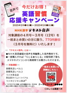 お知らせ 【大垣書店さま限定】英語習慣 応援キャンペーン特設ページ NHK出版 2026/01/05 ご覧いただきありがとうございます。 これはキャンペーン限定の特設ページです。 ご購入はこちらから! ※リンクはダミーです 基礎英語レベル1 基礎英語レベル2 ラジオ英会話 英会話タイムトライアル ラジオビジネス英語